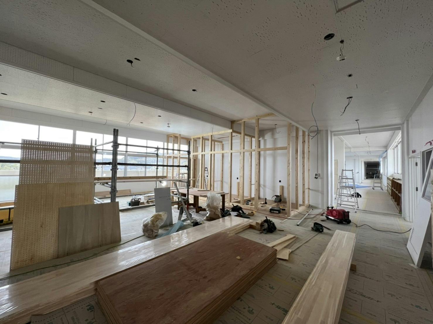そしてついに、今週からは木材が入り、個別ブースの原型となる柱が登場…!