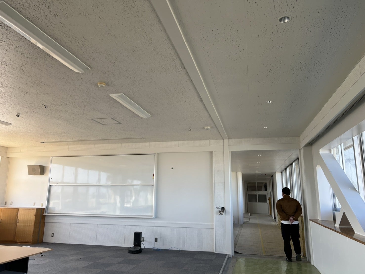 小学校として使われていた頃とは違うダウンライト、しかもLEDで、また雰囲気ががらっと変わりました。
