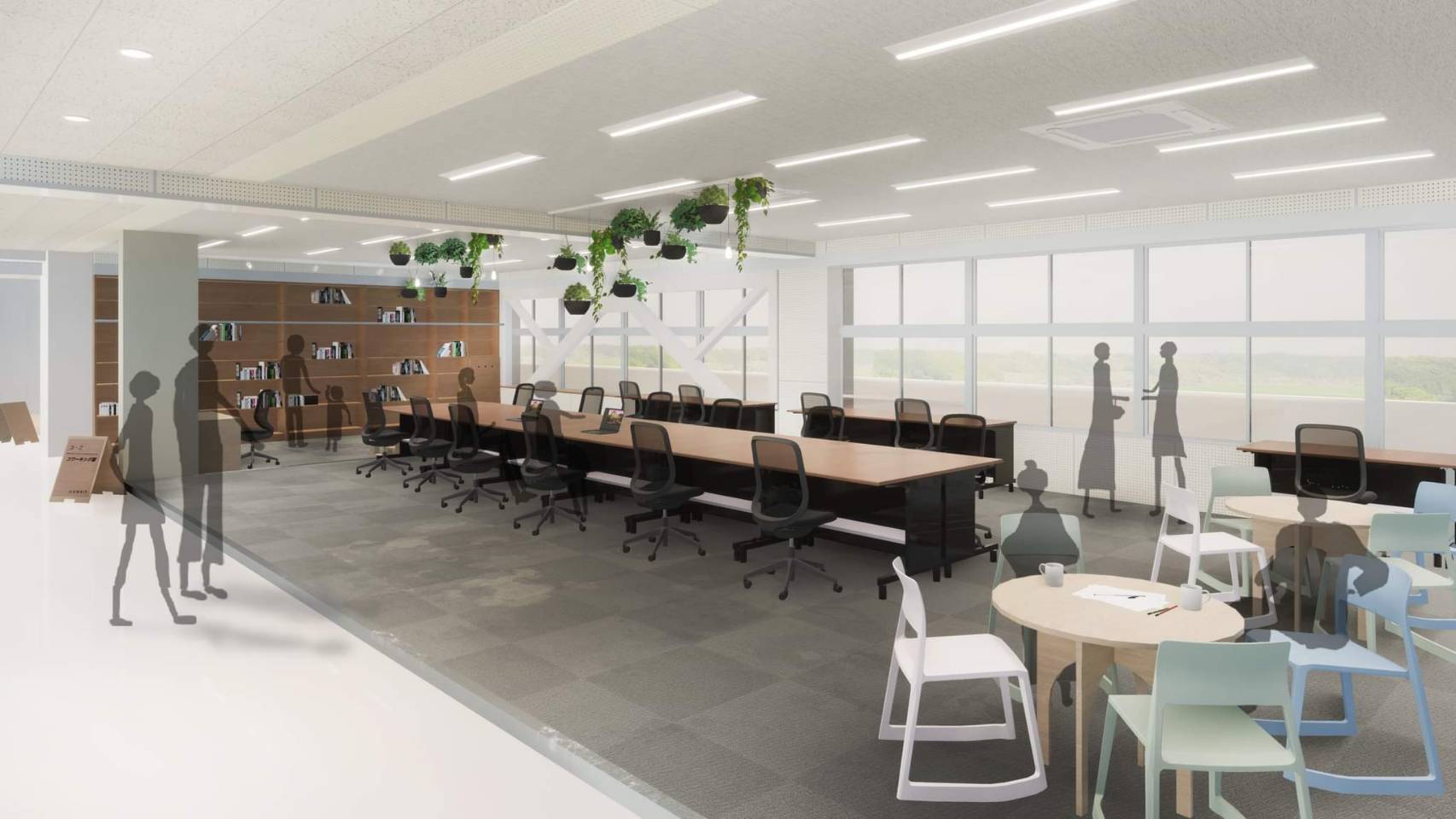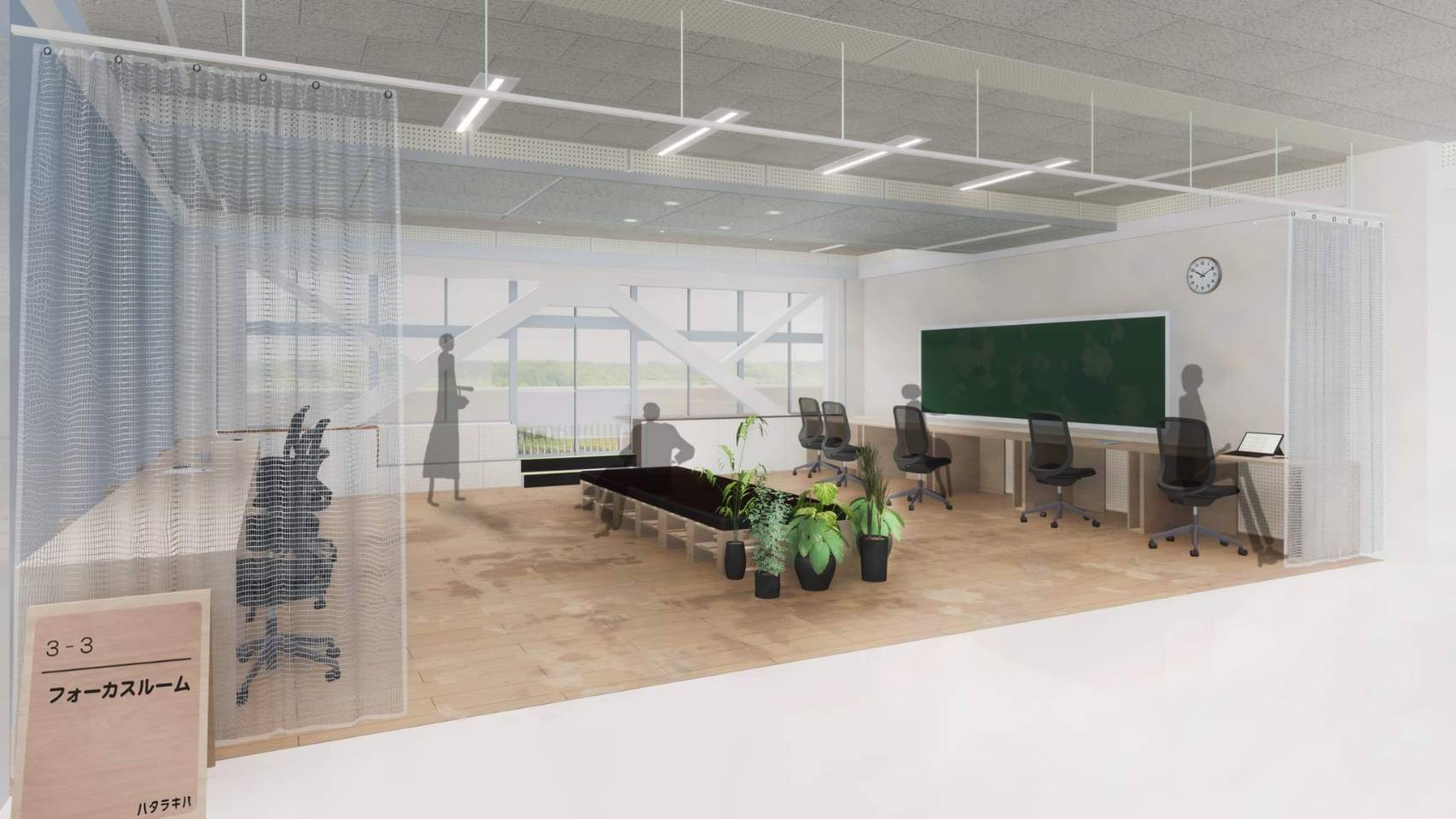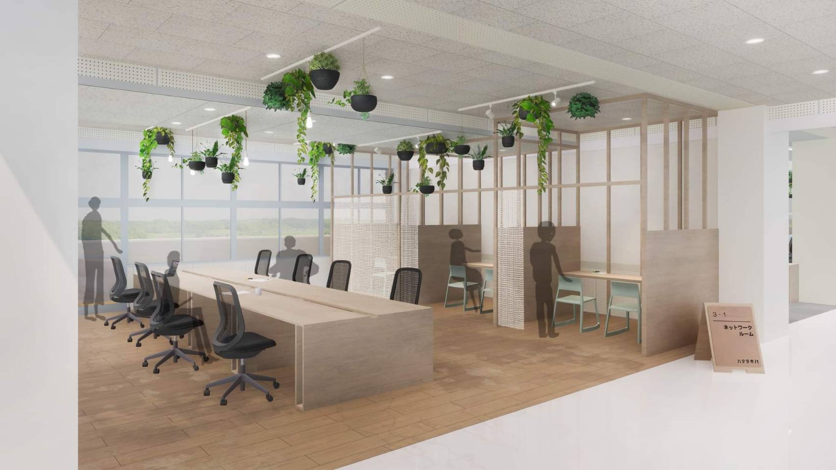 ミーティングができるブースもそれぞれ明るく