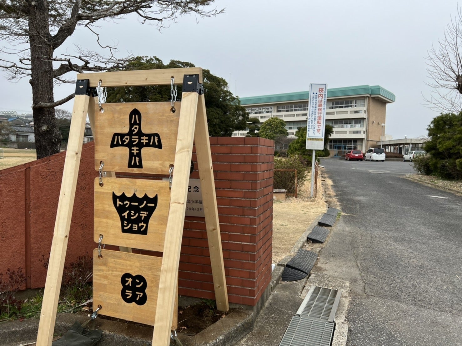 トゥーノーイシデショウの校門前に、看板を設置しました!