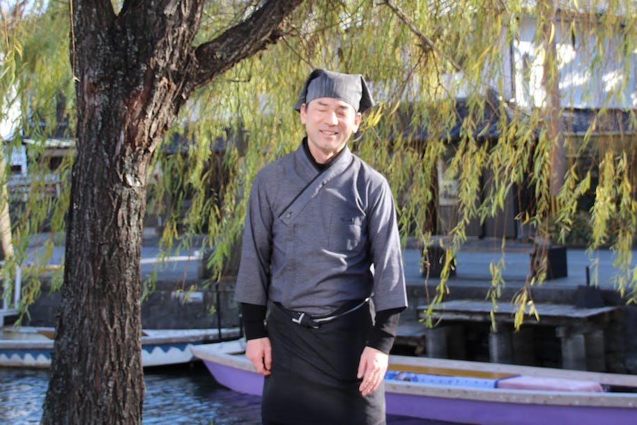 沖端商店会さんのクラウドファンディング挑戦のため、”まるめとほそめ取材班”(マルメ女子と細目おじさん)は、昨年末各店の取材撮影をさせていただきました。今回の商店会さんクラファン挑戦のテーマの一つが「掘割のほとりのお店」ということで、寒い中、、お外で申し訳ないですが〜掘割沿いでスマイル写真を撮影。