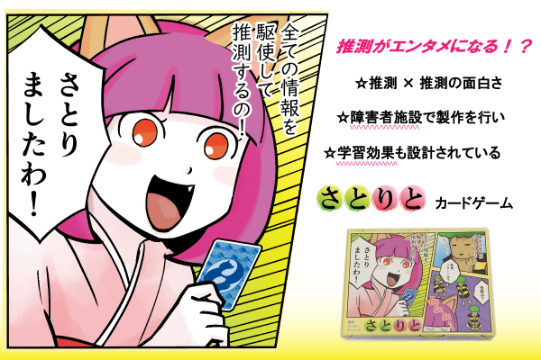 推測の持つ面白さを伝え、推測の機会を増やしたいというのが「さとりと」カードゲームの意義です。