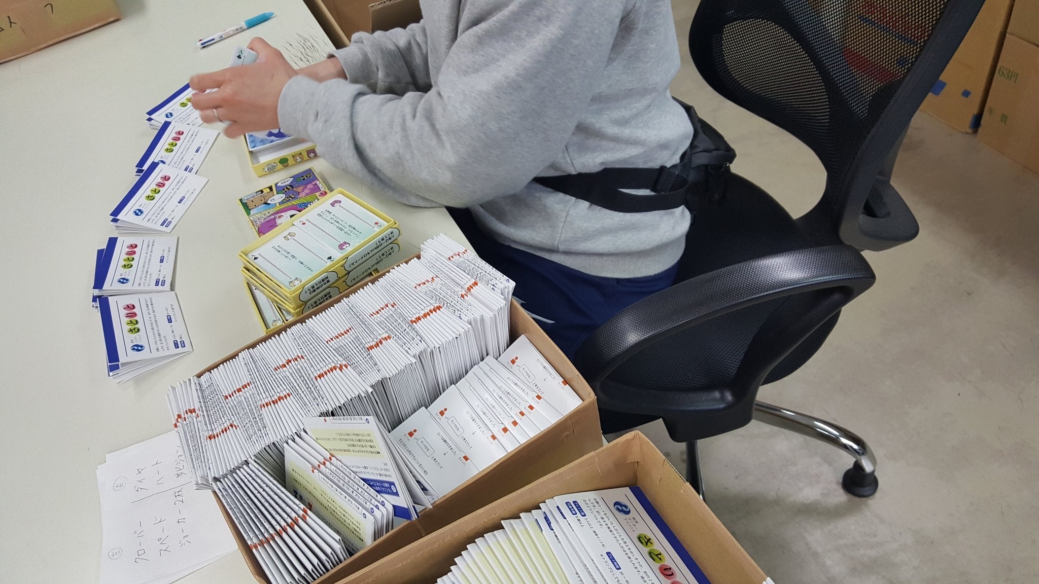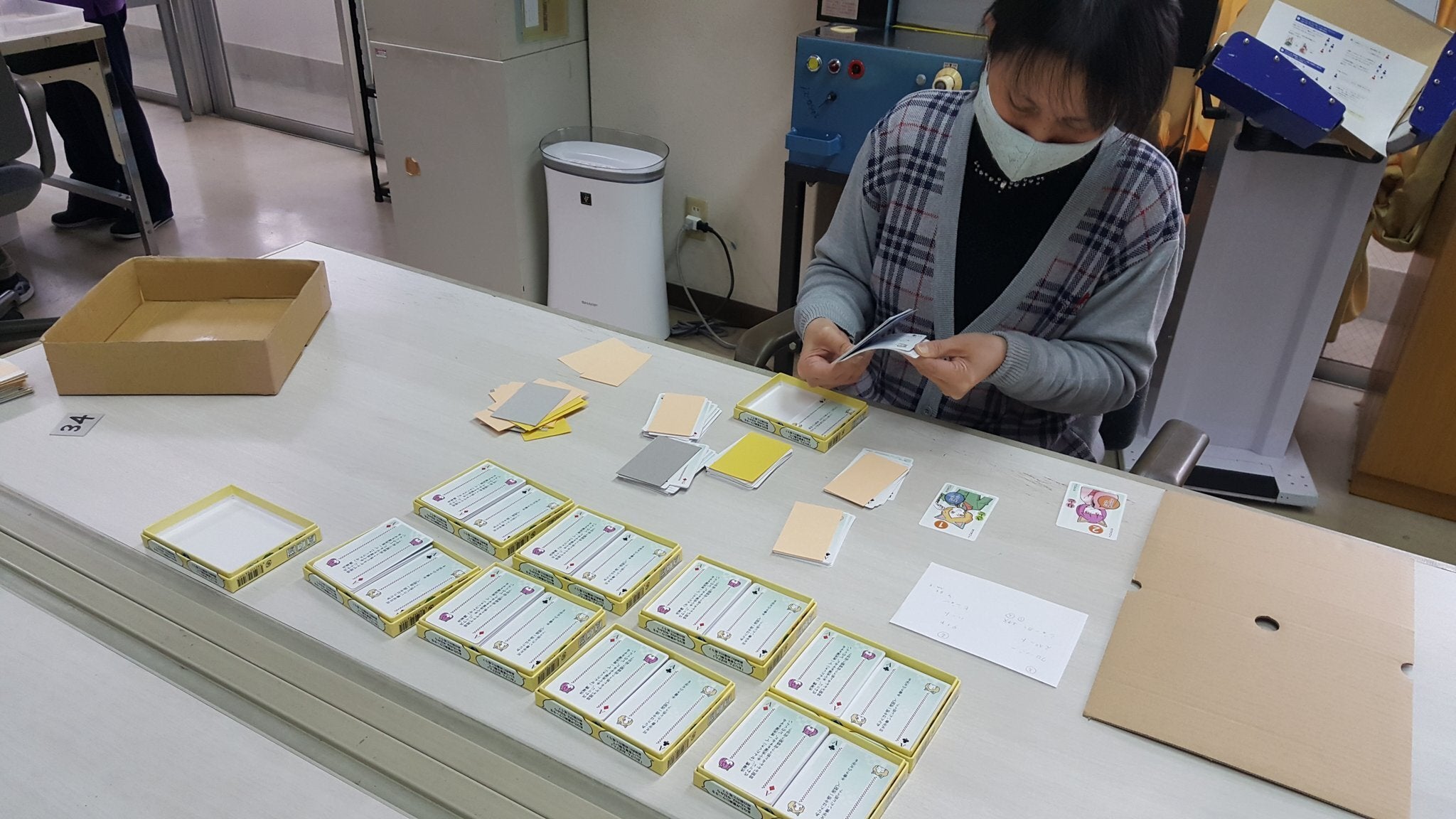 製作をお願いしている障害者作業施設から作業風景の写真が届きました。