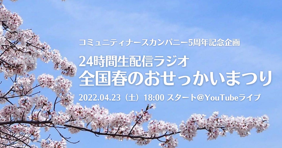 24時間生配信ラジオ「全国春のおせっかいまつり」を開催します。