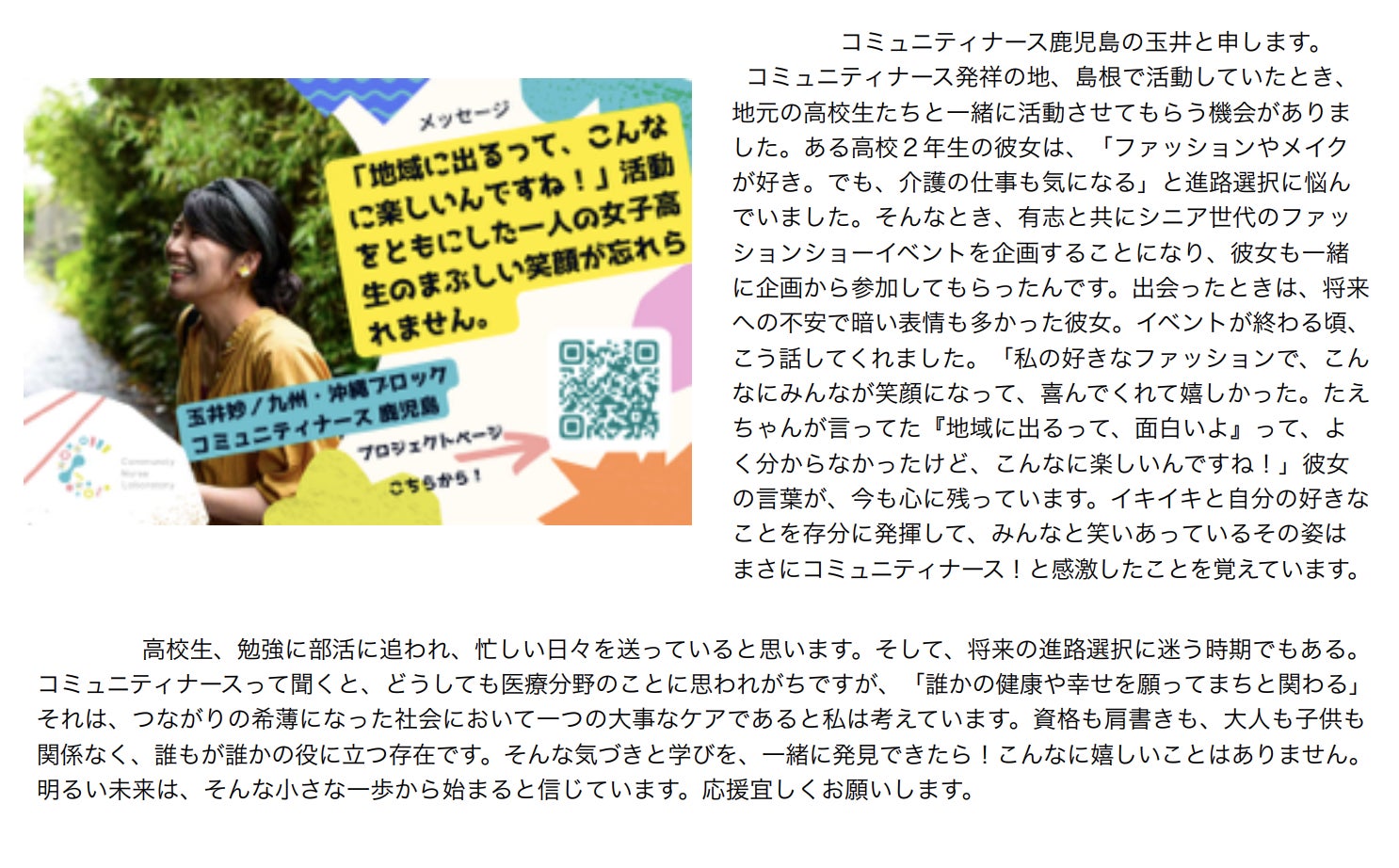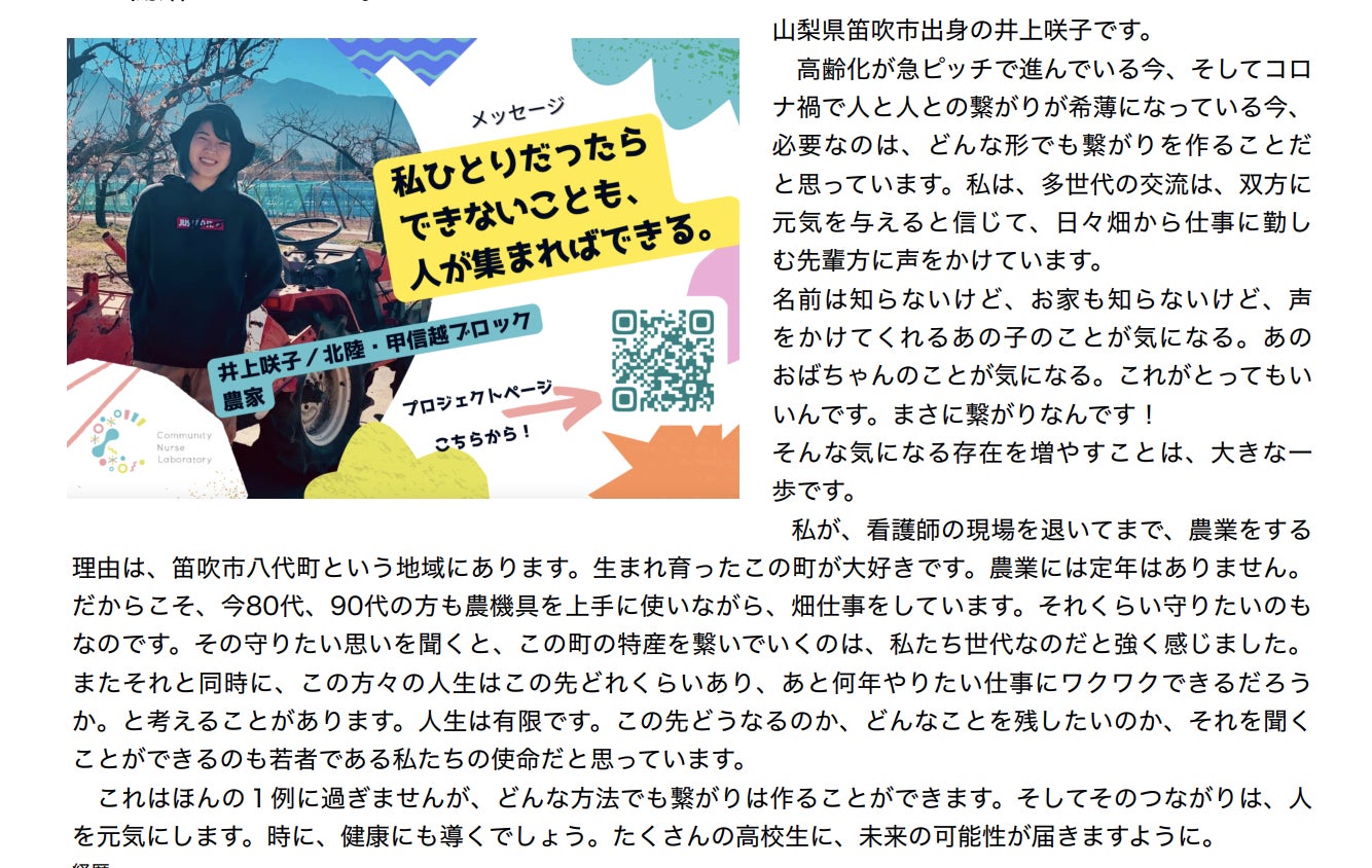 “コミュニティナース”という小さな勇気と行動を高校生に広げたい!