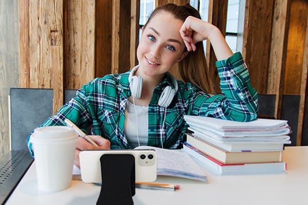 スタンド機能搭載でスマートフォンを置いてビデオ会議、ネット検索や動画の視聴もラクラク。