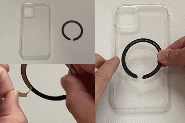 MagSafe非対応の端末には付属のマウントリングをスマホケース等に貼り付けて使用することができます。