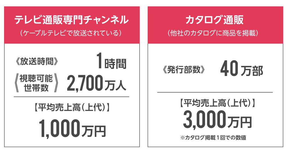 通販カタログ掲載による平均売上は1型で3,000万円(上代)