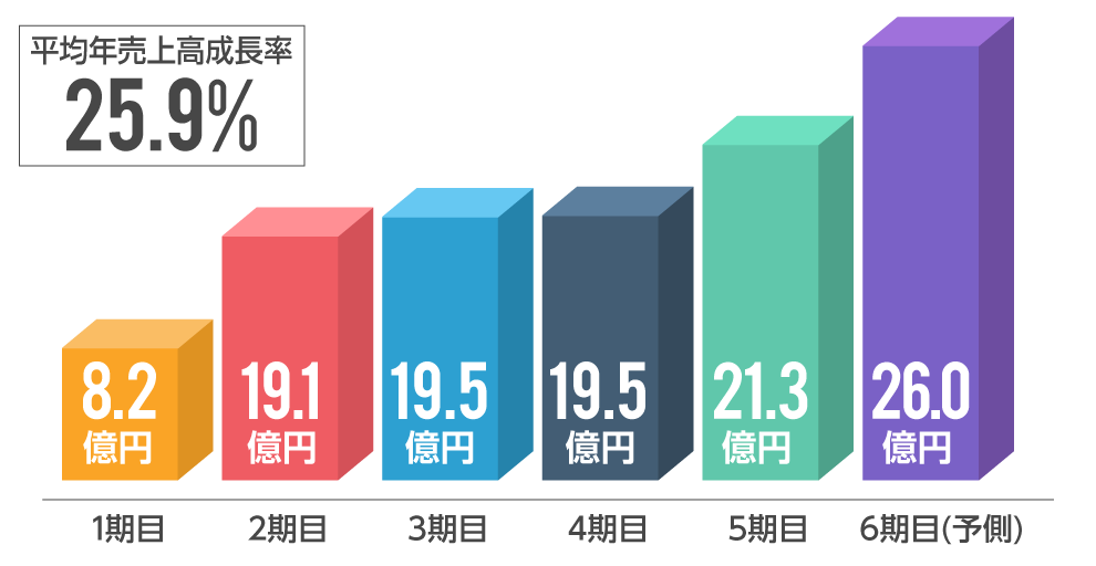 (会社設立1期目~6期目での年平均売上高成長率)となっています。