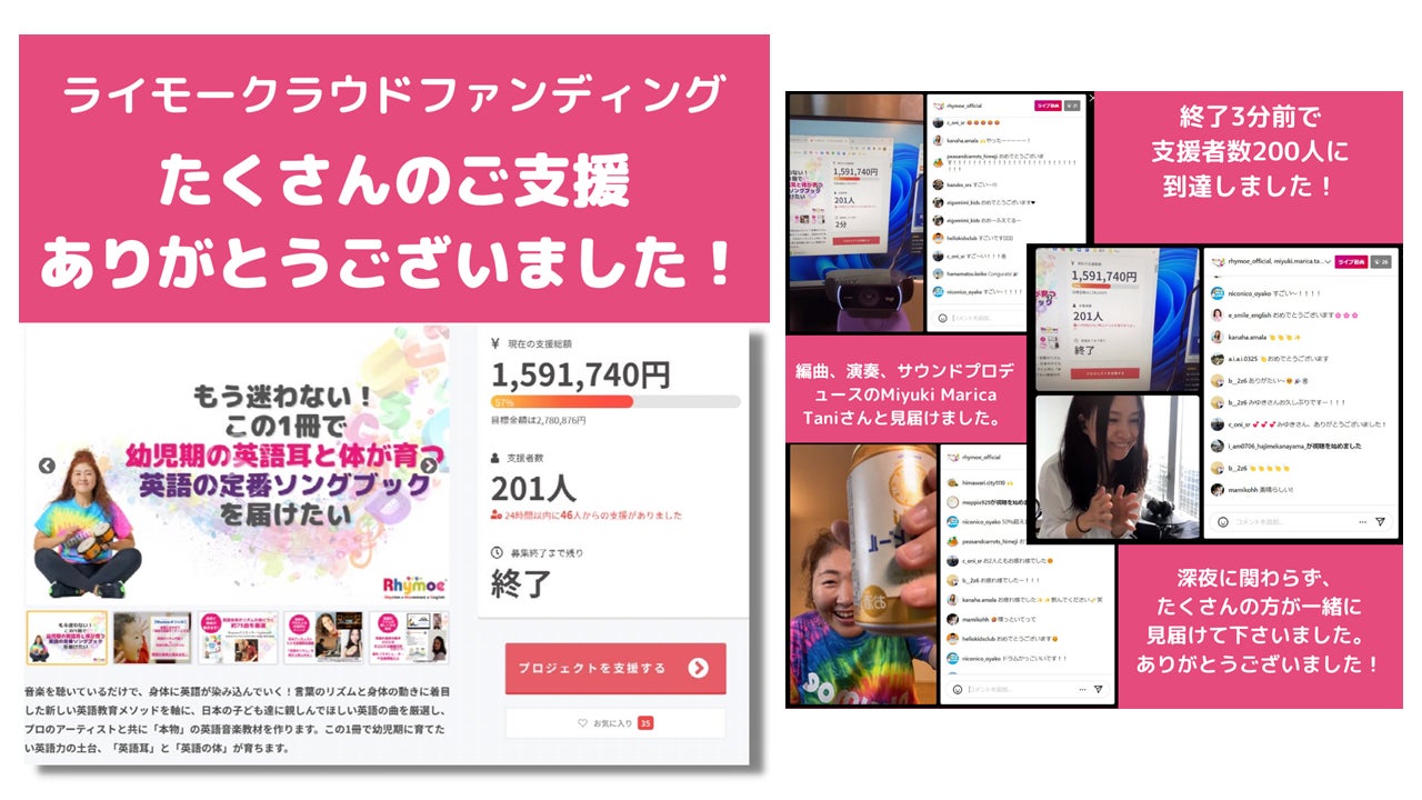 支援者数200名超、支援総額150万円超の結果を残せたたことは、