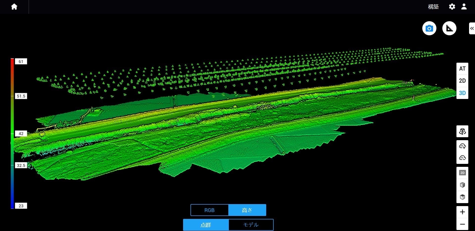 RGBと3D点群にて、高低差の確認ができました。