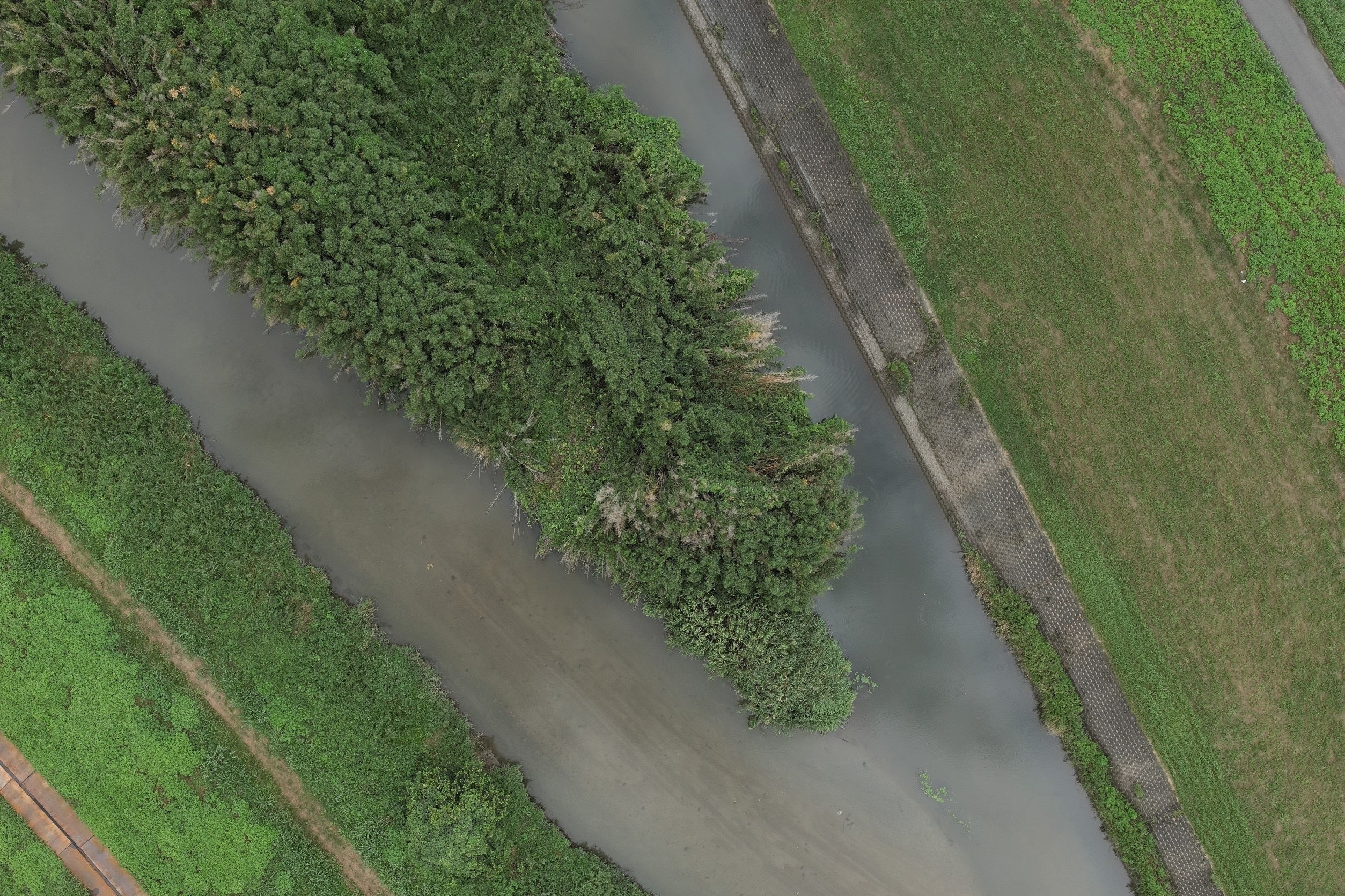 河川の中に草木が生い茂っており増水のリスクについて報告させていたきます。
