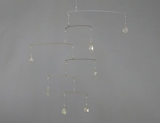 2018/05/26 10:01最新作!水晶のさざれ石の星くずモビール 七つ星をモチーフにつくりました。 さざれ石の滑らかな局面に反射する柔らかな光が心地よい最大長さ約15mm~20mmの比較的透明度の高いさざれ石を7個使っています。 高さ約28cm 最大回転直径約30cm 重さ約20g 風にふかれて こんな形の水晶のさざれ石を使います。 是非こちらもご検討下さい。 もっと見る