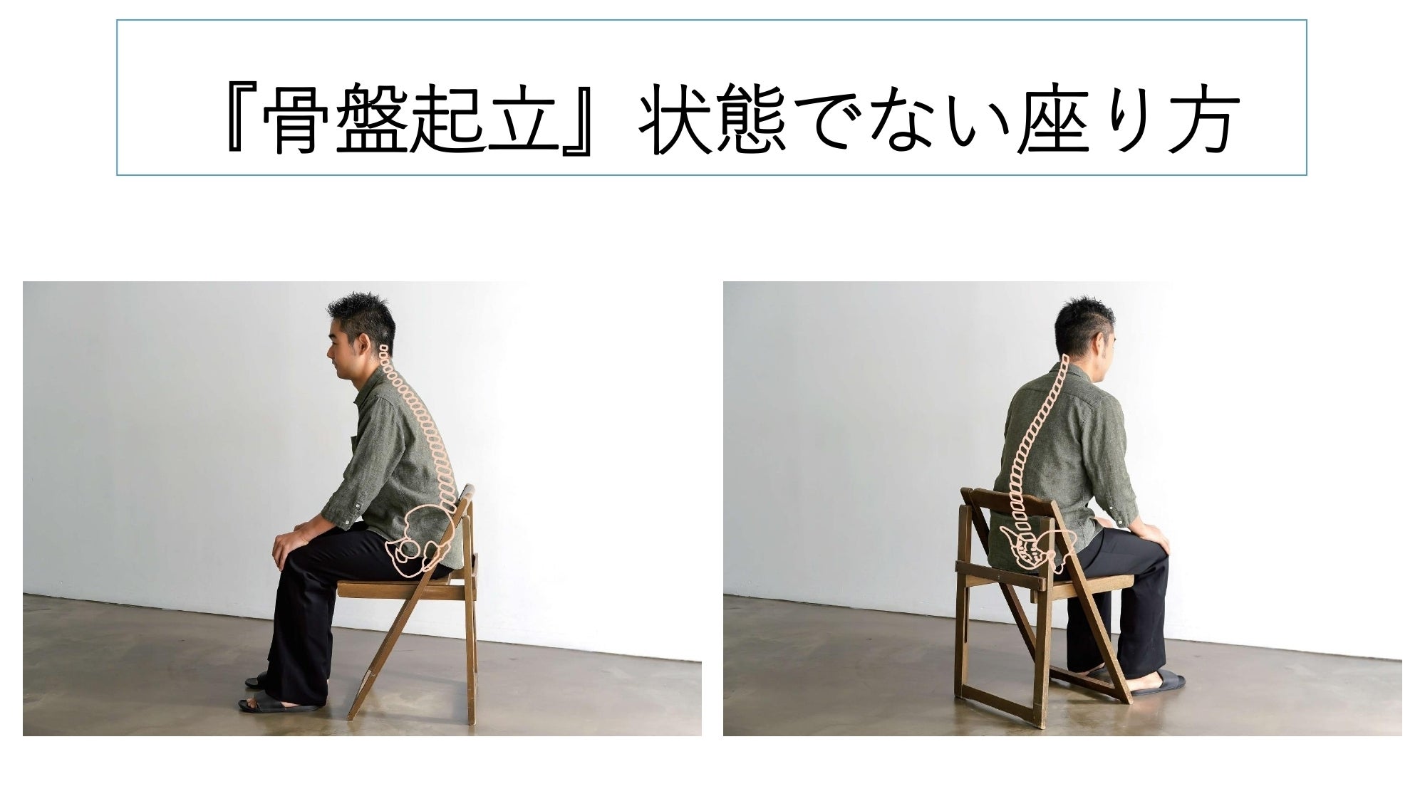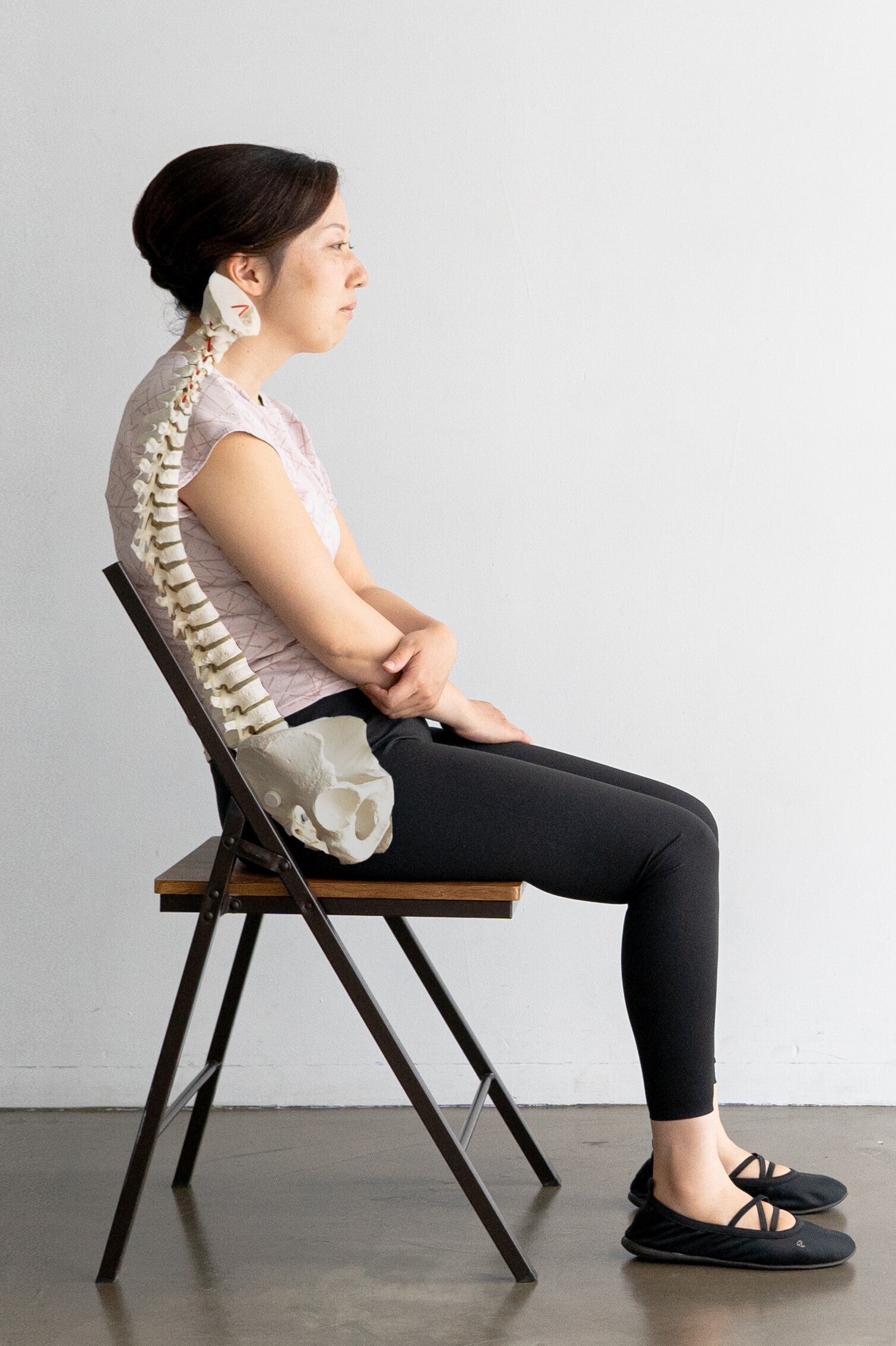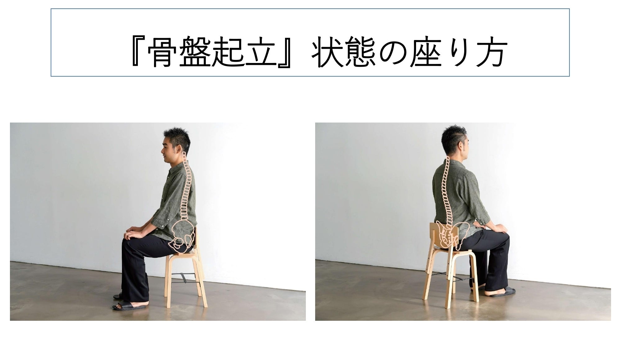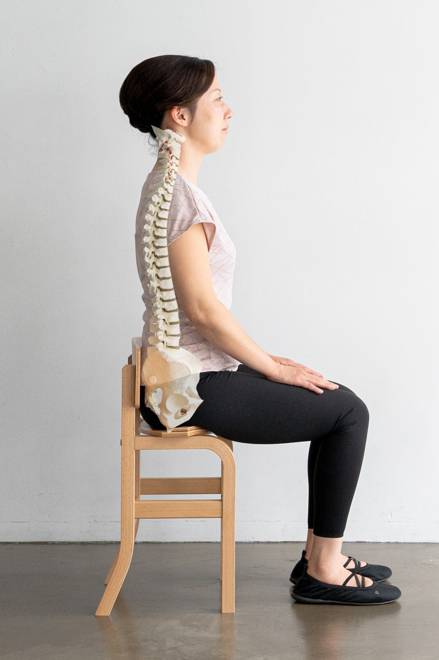 『椅子の正座』とは、しっかりと骨盤が立ち、背骨が理想的なS字カーブ(生理的弯曲)を保った状態で座っているということです。