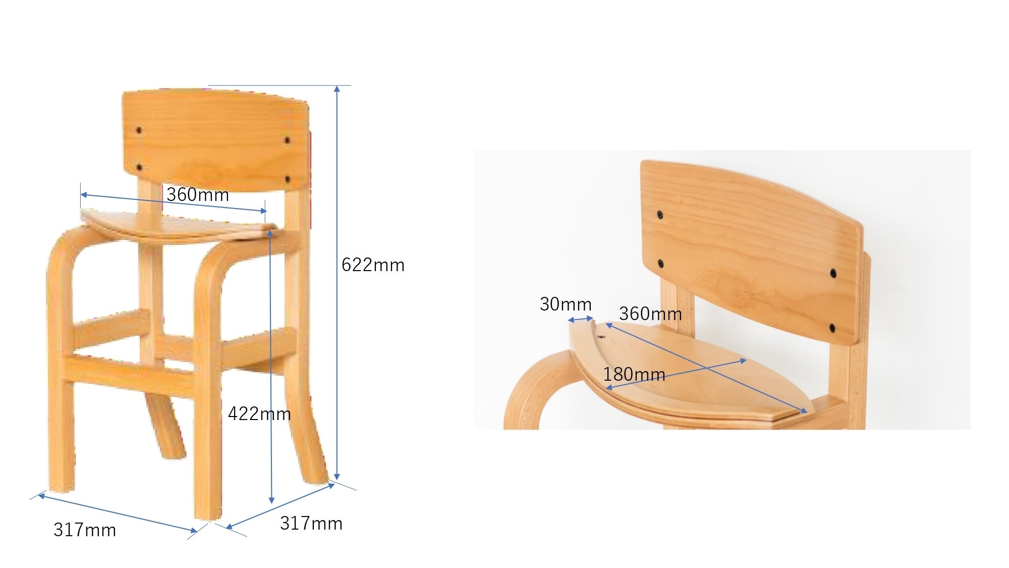 ※画像のZAGOOチェアーは試作品で足の部分が少し違いますが、皆様にお届けするものはすべて木製となります。寸法は同じです。