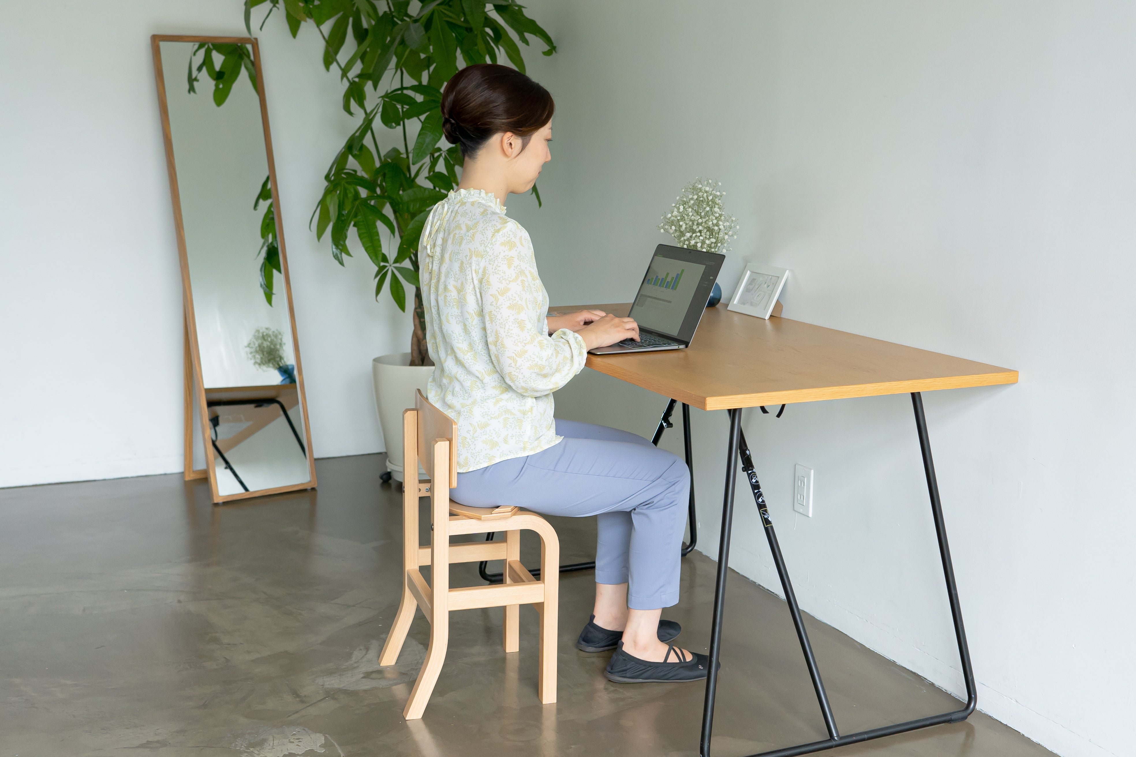 また、オフィスチェアーと違い、省スペースで木の温もりを感じるデザインが、インテリアにもなじみます。