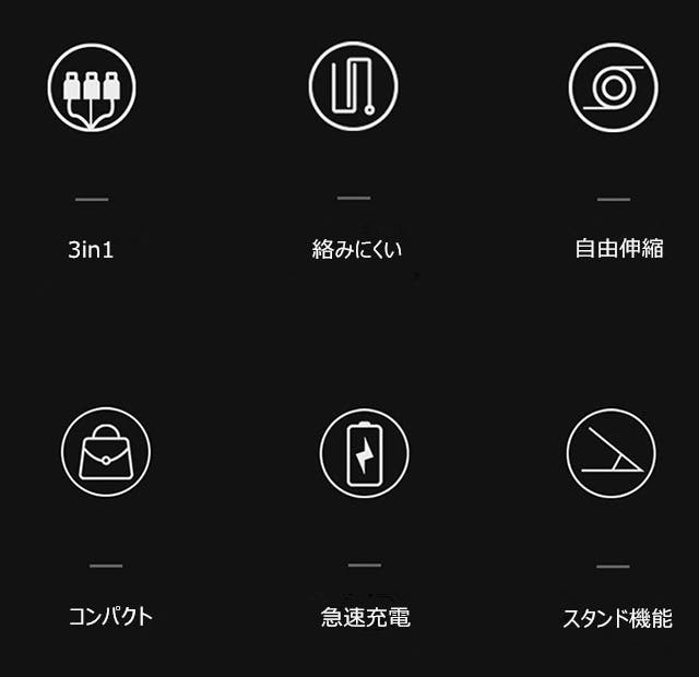 3in1設計、断線しにくい、長さは利用シーンによって自由自在に調節できます。