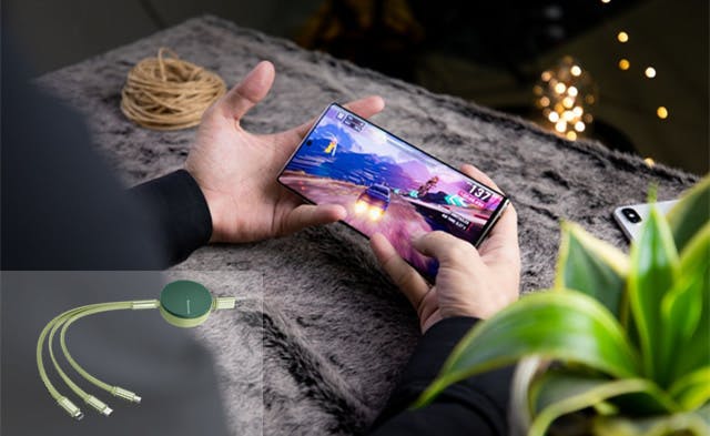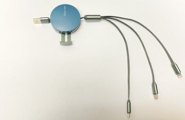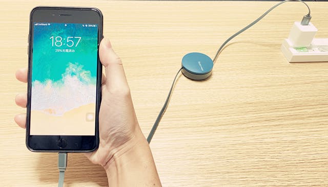 巻き取り式で乱れない。巻き取り式のUSB充電ケーブルなので、ケーブルが絡まったりすることはありません。