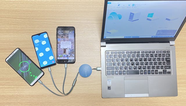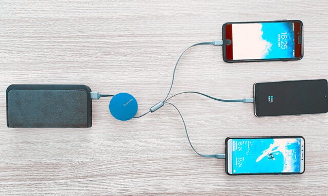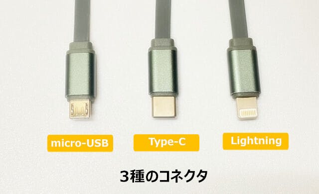 1つのUSBポートから3台のデバイスが同時に急速充電できますし、3種類のコネクターを搭載し、ほぼすべての機種に対応できます。スマホの種類がバラバラの家族に、iPhone、Android共に問題なく通常として使用できます。また、モバイルバッテリー、車載USB、PCのUSBにて問題なし、地震などの震災に非常用に役に立ちます。