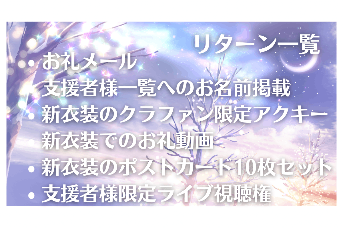 ❅ 10000円プランのお礼メール、お名前掲載、アクリルキーホルダー、お礼動画、ポストカードセットに下記が追加されます。