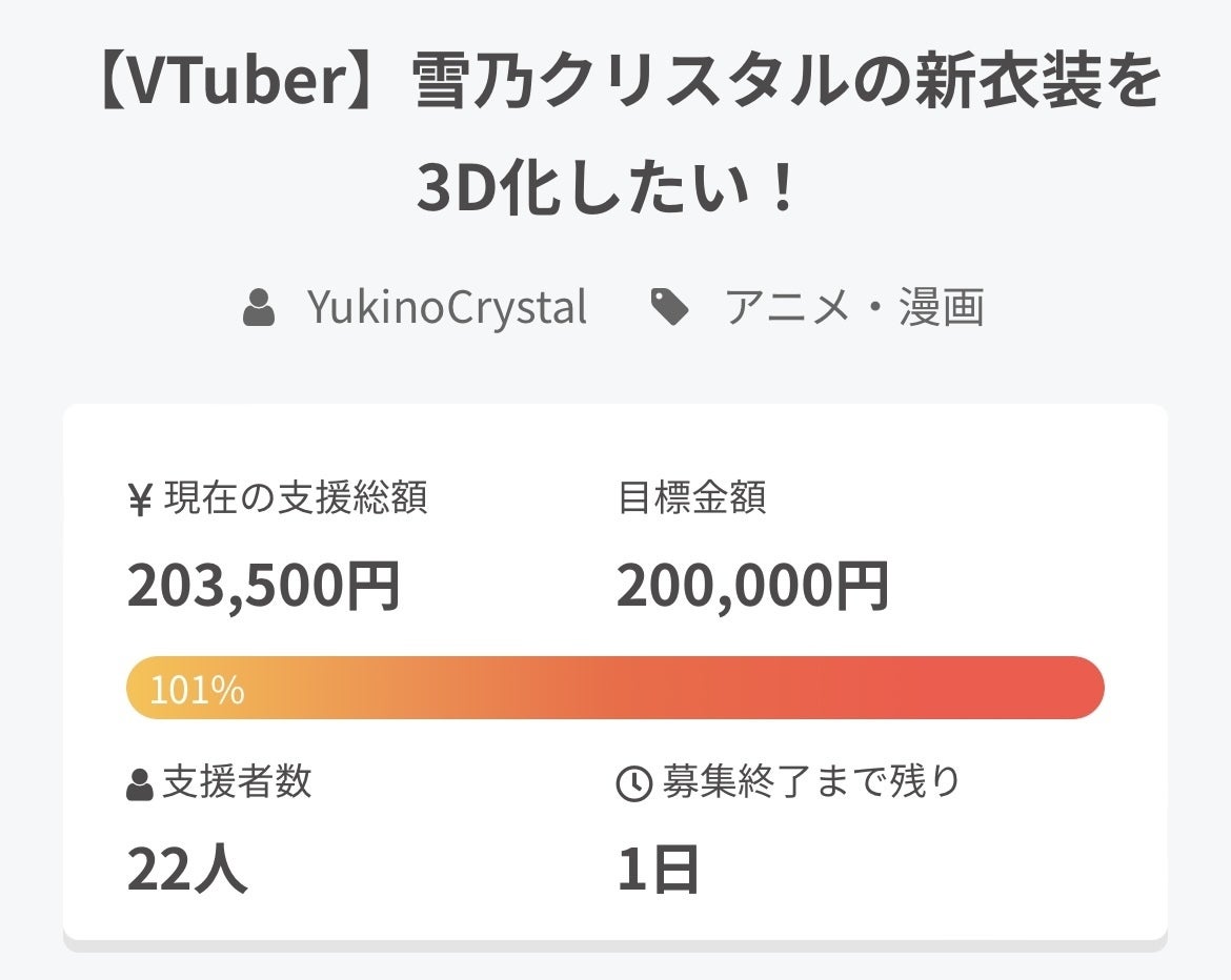 昨日とうとうこちらのプロジェクトが100%を超えました!!