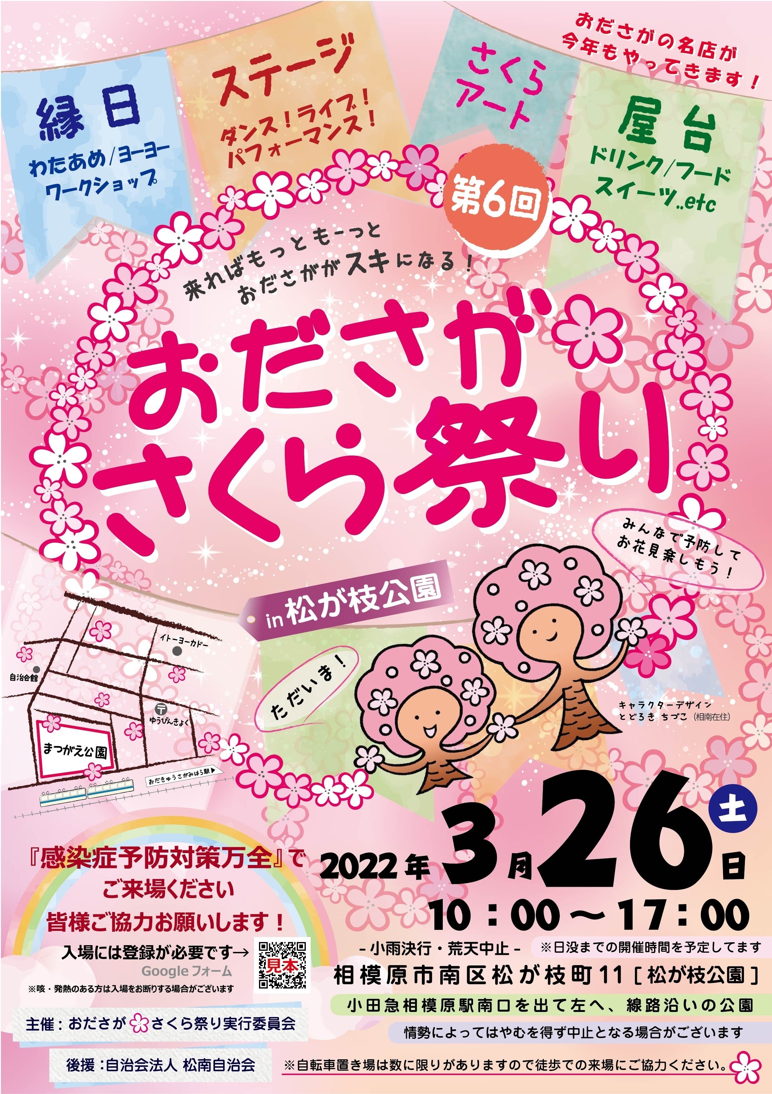 新型コロナウィルス感染症まん延防止等重点措置が3月21日に延期されたことに伴い、実行委員会にて慎重に協議した結果、第6回おださが桜まつりを4月24日日曜日に延期することになりました。