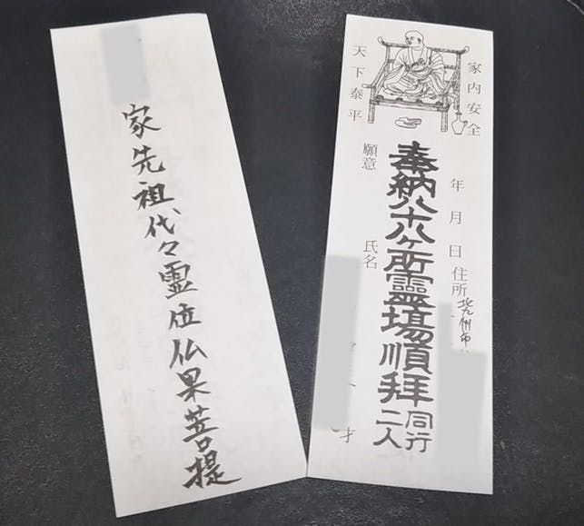 私共の手元に届きましたら、ご記入頂いたお札と経本を札所のご本尊にお供えして読経いたします。
