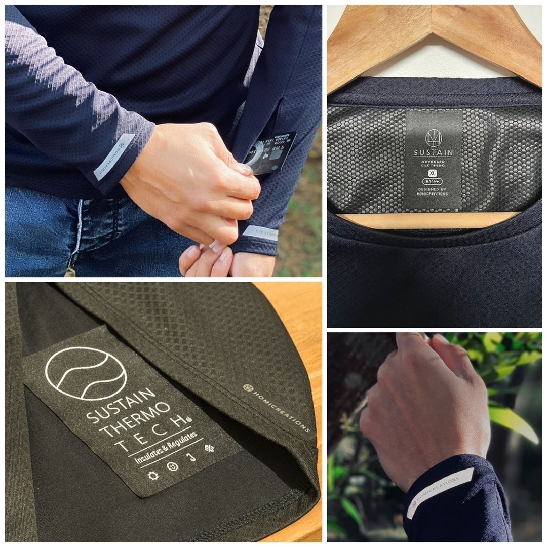 メーカー独自開発の生地を多層で使用する(SUSTAIN THERMOTECH)ことで、メリノウール(※最高級の天然素材)と同レベルの吸湿発散性を再現。