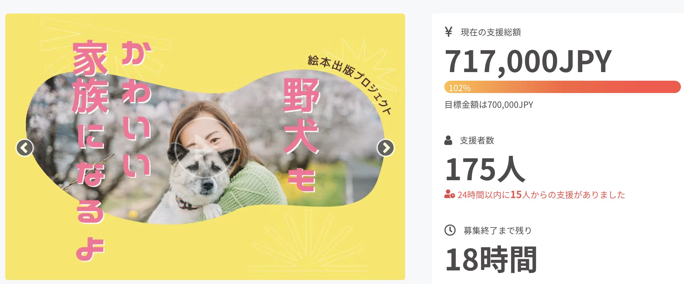 今晩23:59までプロジェクトは公開しておりますが、取り急ぎ、お礼まで。