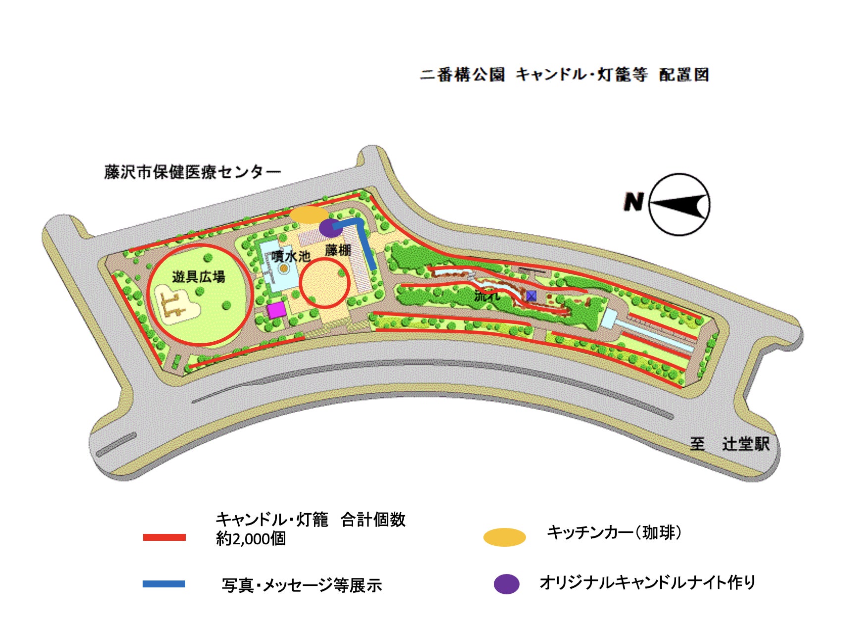 一人ひとりの想いと共に灯籠に明かりを灯し、いくつもの灯りで公園を包もうと思います。