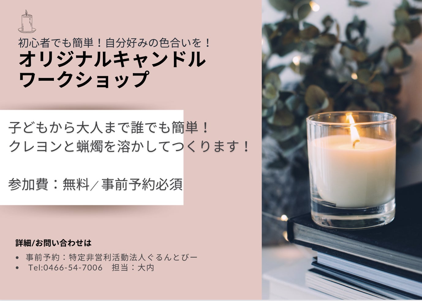 14:00 集合→イベント概要説明/オリジナルキャンドルワークショップ開催(事前予約)