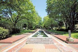 犬の散歩に、・・カモの親子が泳いでいたり噴水や藤棚、