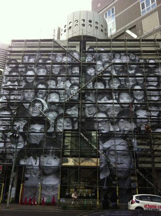 外壁用の出力は綿密に計算されフランスで出力をしてものだ。この作業と同時に2階3階の展示も進めて、アレックスというテクニカルのチームがプリンターとコンピューター、カメラの設置をしている。その作業に割り込んで外壁のイメージを打ち出さないとならなくなってしまった。