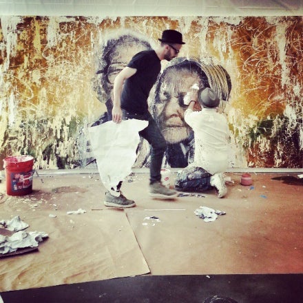 これがフォセ・パラとのコラボの作品。つまりインサイドアウトという万人に向けたフロジェクとやりながら(しかもまったくお金を生まない否、消費していくだけの)このようなファインアートの世界での作品も多く作っています。これらの作品は数百万の後半の価格でギャラリーで販売されていることもあまり日本では知られていない。欧米のセレブたちは、作品を買ったりJRの活動自体にもドネーションしている状況が生まれている。