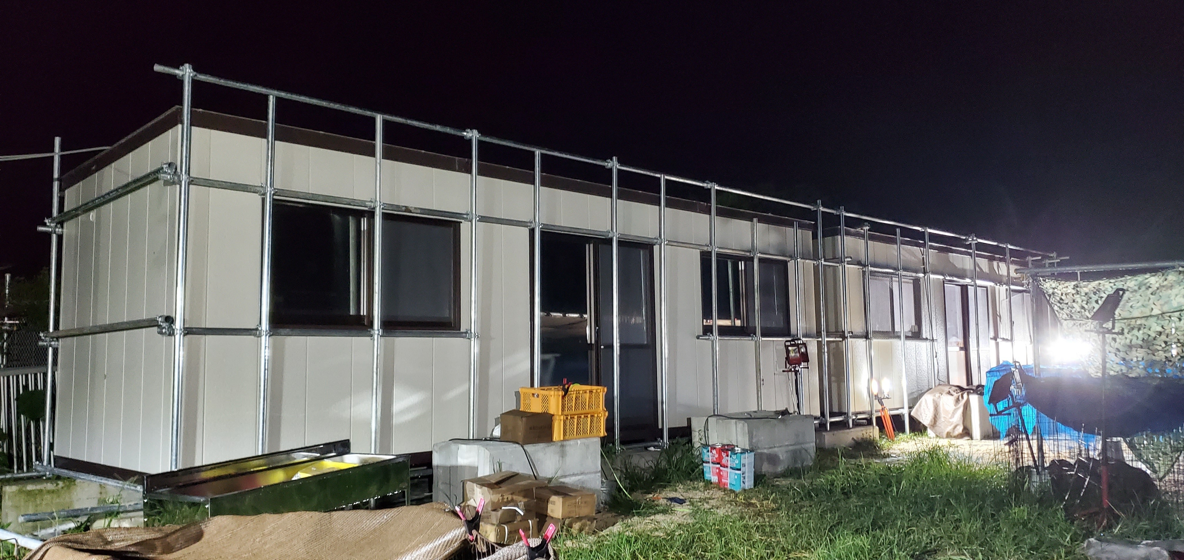 本日は断熱材の入っていないプレハブの屋根にシェードをはるために