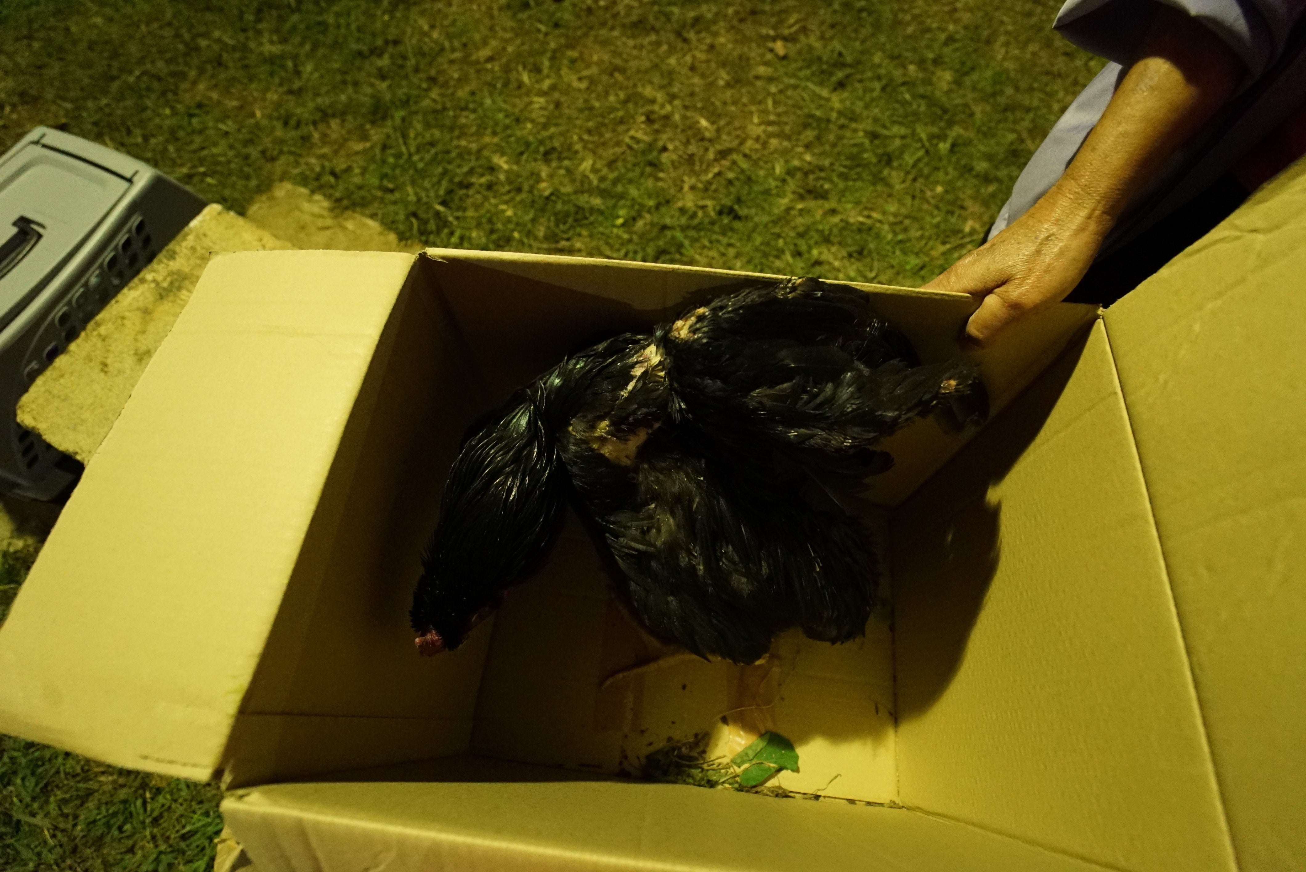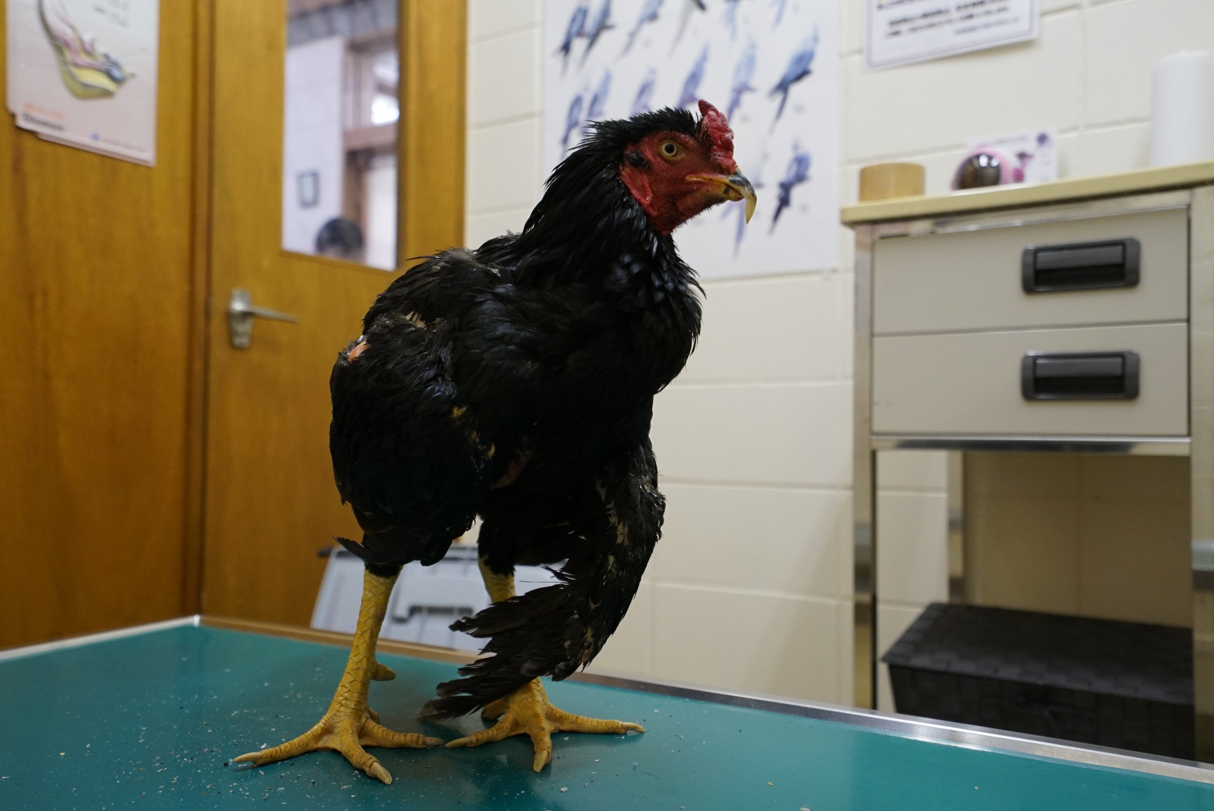 サバチコはわりと大型sizeなのに下のくちばしと蹴り爪がバッサリと切られ 受け軍鶏にされていた