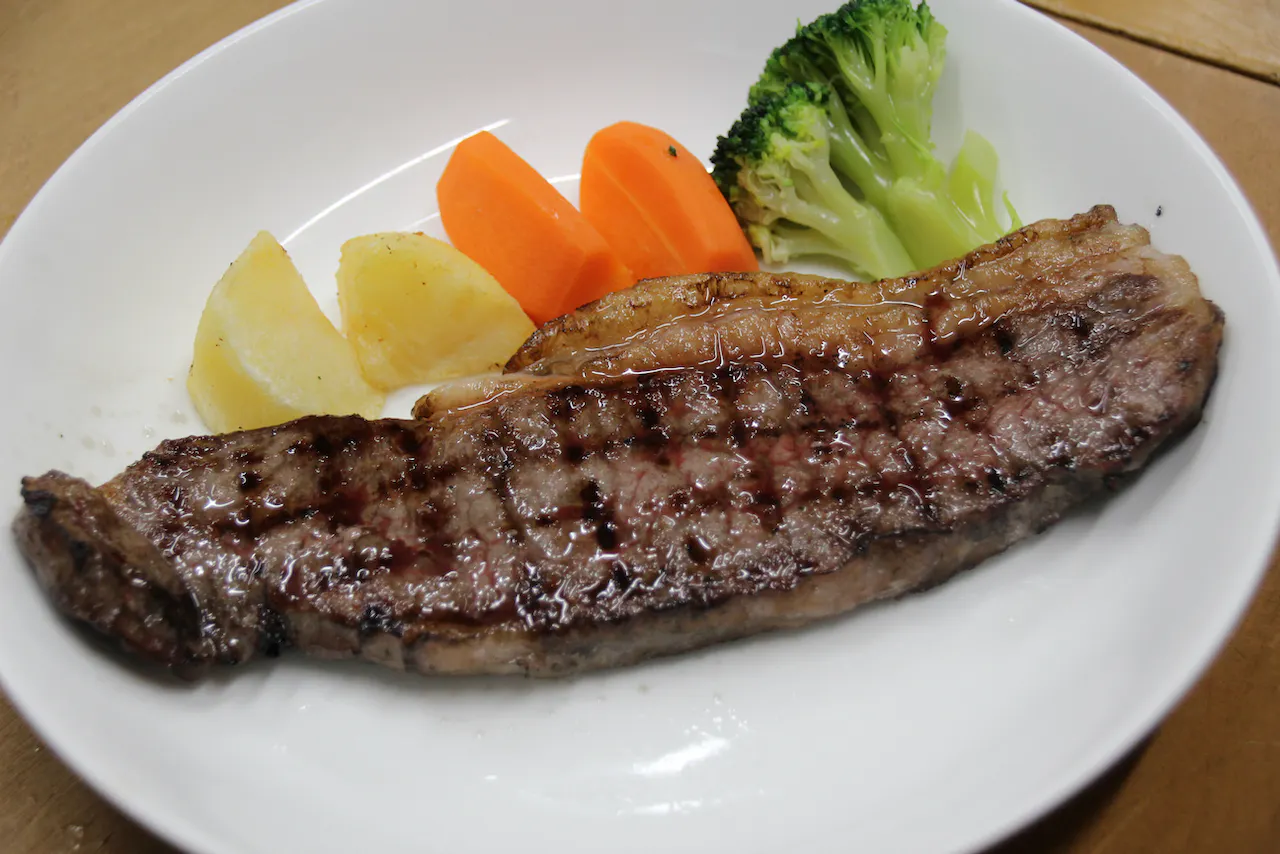 ↑あれ、、、わざとじゃないんだが、、、ステーキじゃなくて付け合わせの野菜にピントが合ってる感じ????