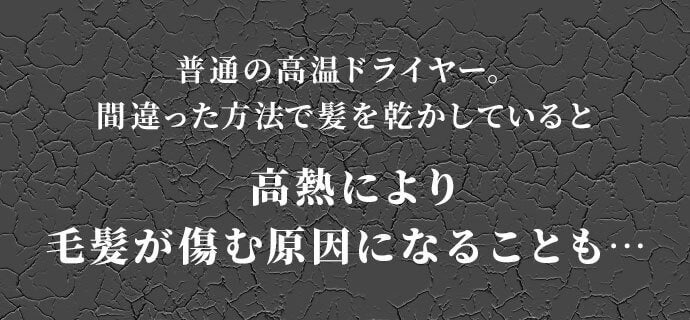 高温のドライヤー(100℃~120℃ )は、熱風でブローすることで髪を傷めてしまいます。