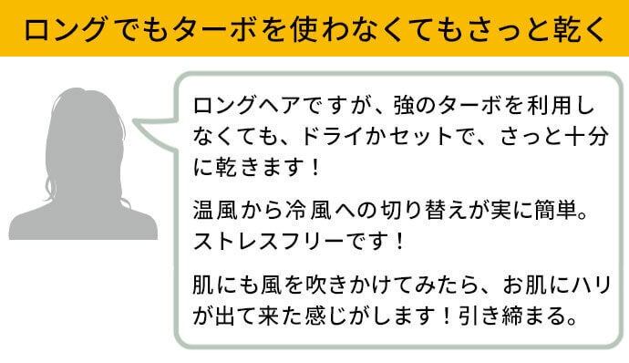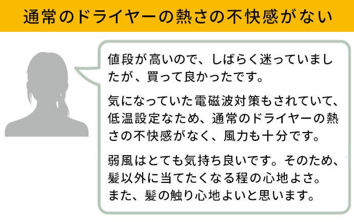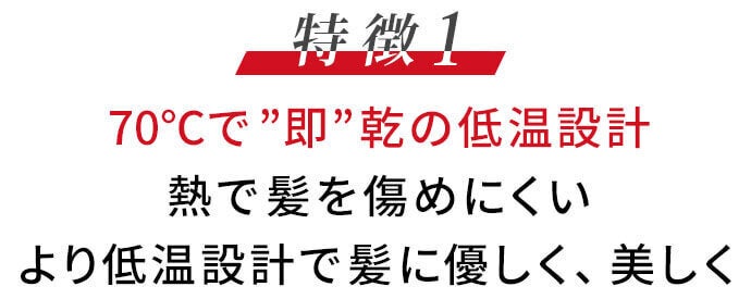 ①70℃で”速乾”の低温設計で、髪へのダメージを抑えながら乾かせる!