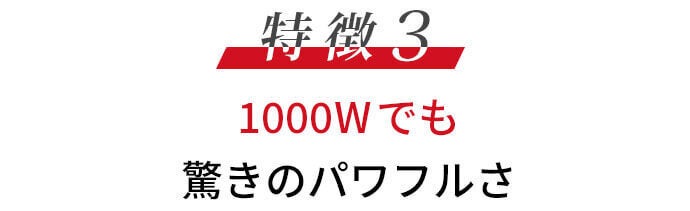 ②1000Wでも驚きのパワフルさ!特殊モーター技術とP-UP波で”速乾”!