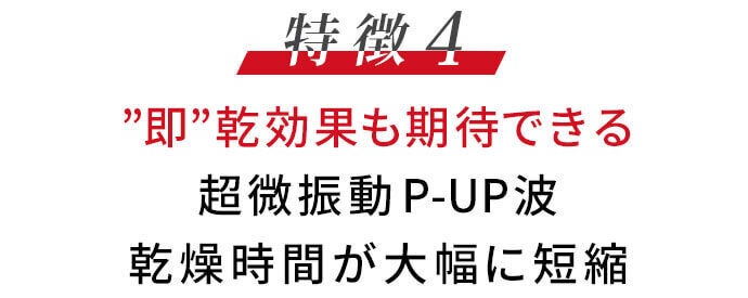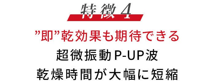 特殊モーター技術とP-UP波の作用で、水を細かく分子化して”速乾”を実現。
