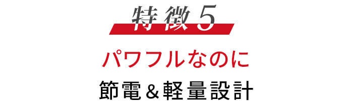 効率的に風を送り出すために、空気の吸込口 を左右に2箇所付けることで、風力はパワフルなのに電力は省エネ。