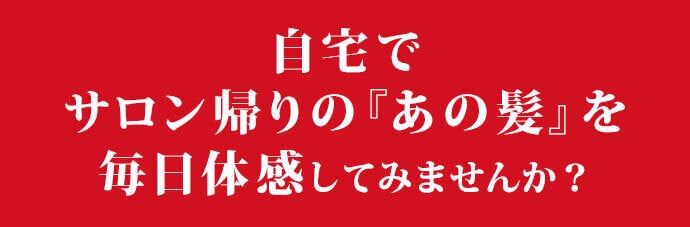 サロン帰りのような髪の毛の艶、手触り、セットをご自宅で、毎日、簡単に体験出来ます。忙しい毎朝のセットも簡単にできます。