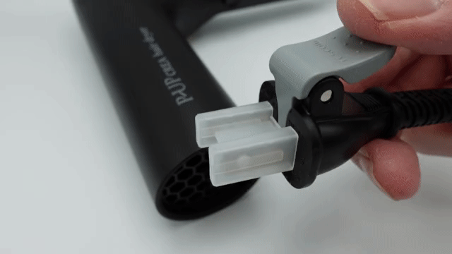 P-UPクレア ヘアードライヤーは、レバーをワンプッシュするだけでコンセントから簡単にプラグが抜けてストレスフリーです。