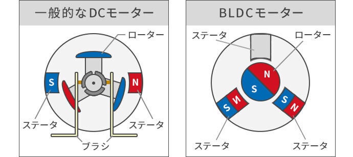 BLDCモーターは、一般的なDCモーターと比べると、高効率で長寿命です。