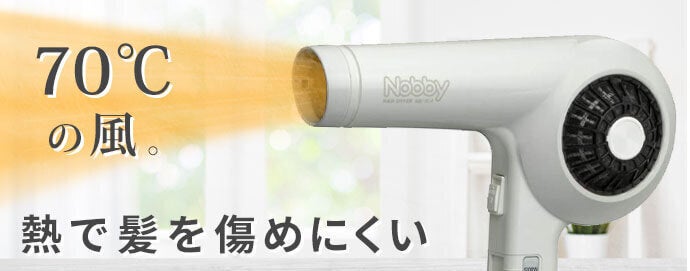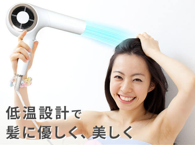 P-UPクレア ヘアードライヤーは、格段に低温の70℃。