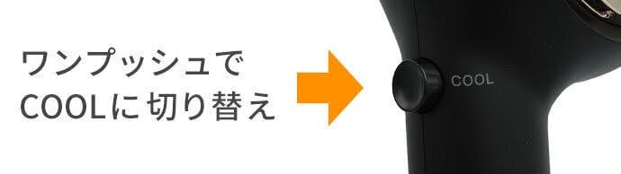 ワンタッチで温・冷風に切り替えが可能。温風で乾かし、ワンタッチで冷風にし、急速に髪の温度を下げることで、思い通りのスタイリングのクセ付けも可能です。