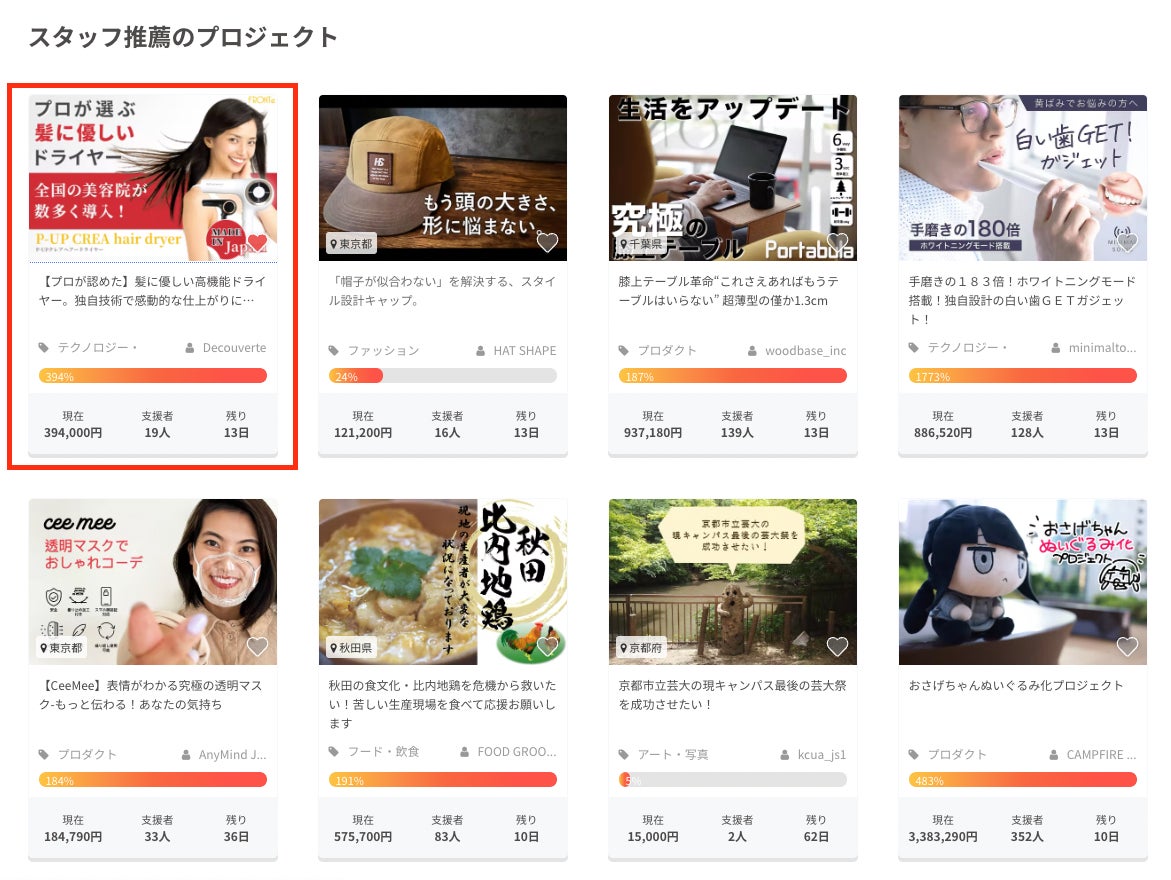 ★本日CAMPFIREのスタッフ推薦のプロジェクトに掲載されました!