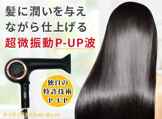 独自開発のP-UP波により、"ドライヤーで乾かす"それだけで、サロン帰りの”あの髪”を体感できる。
