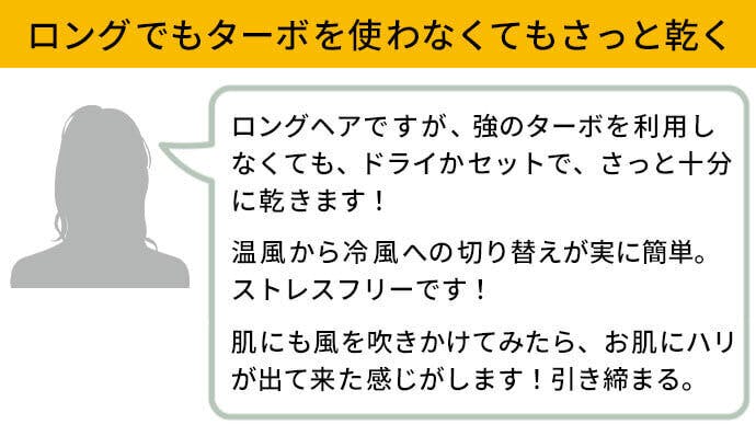 通常のドライヤーで30分かかっていたのが10分で乾いたというロングの人の嬉しいお声も!『クレアヘアードライヤー』の速乾性とセット力があれば、ドライヤーの取り合いになる忙しい朝は特に大助かりです。